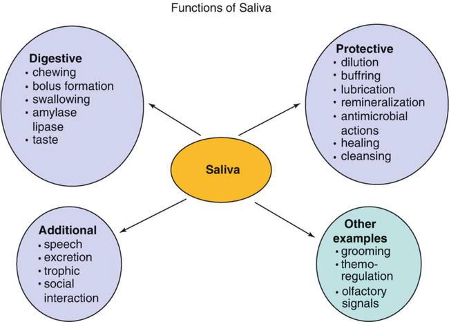 | Function | Watery saliva | Resting saliva | Lubrication |