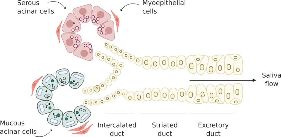 • Major salivary glands are large paired exocrine glands that produce saliva.