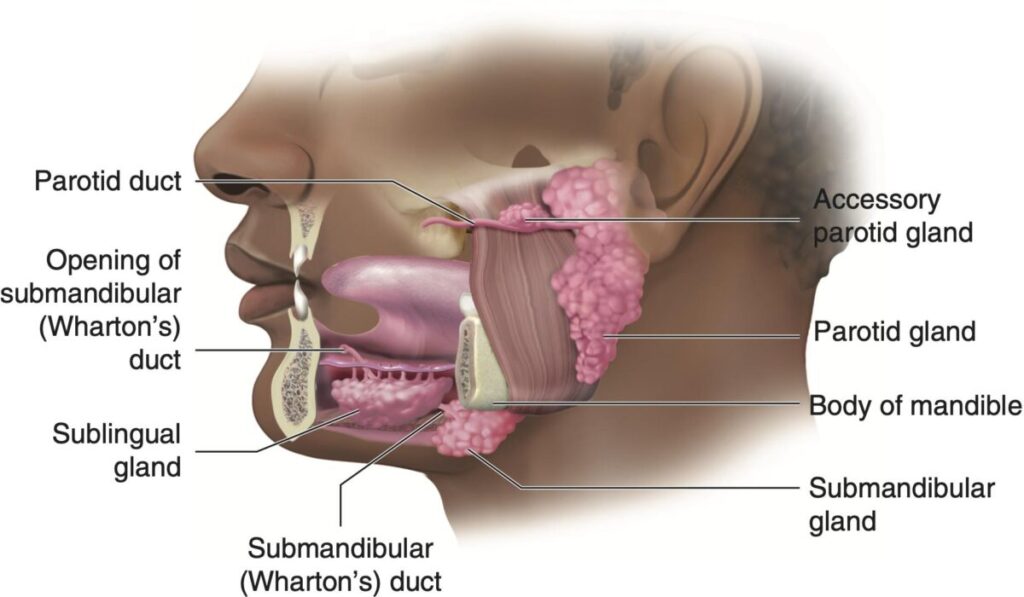- Major Salivary Glands — Parotid, Submandibular, and Sublingual glands.